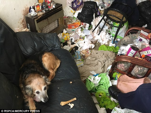 Видео, ставшее свидетельством произошедшего, показывает момент, когда инспекторы общества охраны животных обнаружили 16-летнего пса колли-метиса в доме в Уоллейси, графство Мерсисайд: животное было вынуждено жить в этих условиях и использовать помещение как туалет в течение нескольких месяцев.