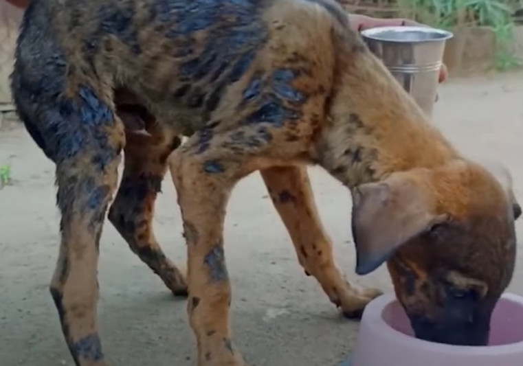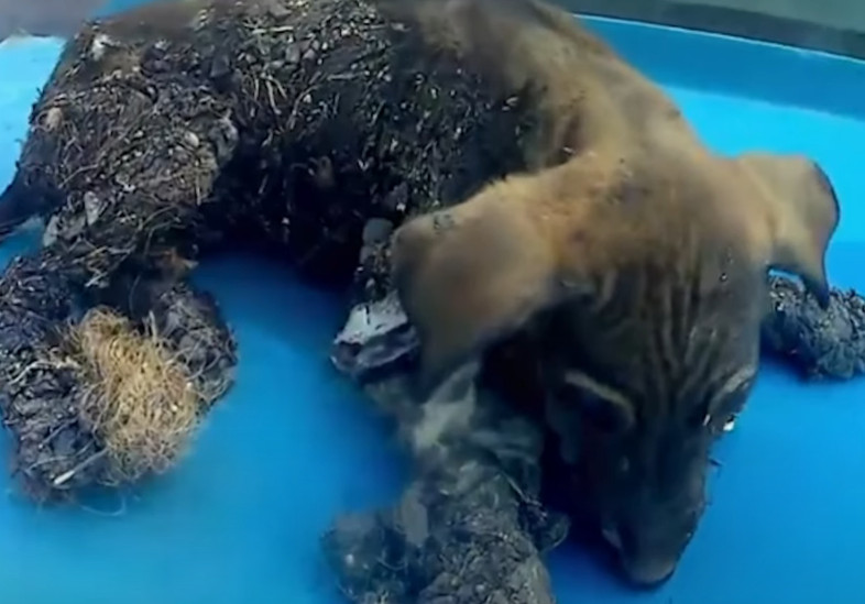 Несмотря на то что в шерсти всё ещё остались отдельные пятна асфальта, они не представляют немедленной угрозы и будут удалены при последующих купаниях и аккуратном груминге. Сейчас животное бодрое, но истощённое — команде предстоит курс ухода и питания, чтобы восстановить нормальный вес и силы.