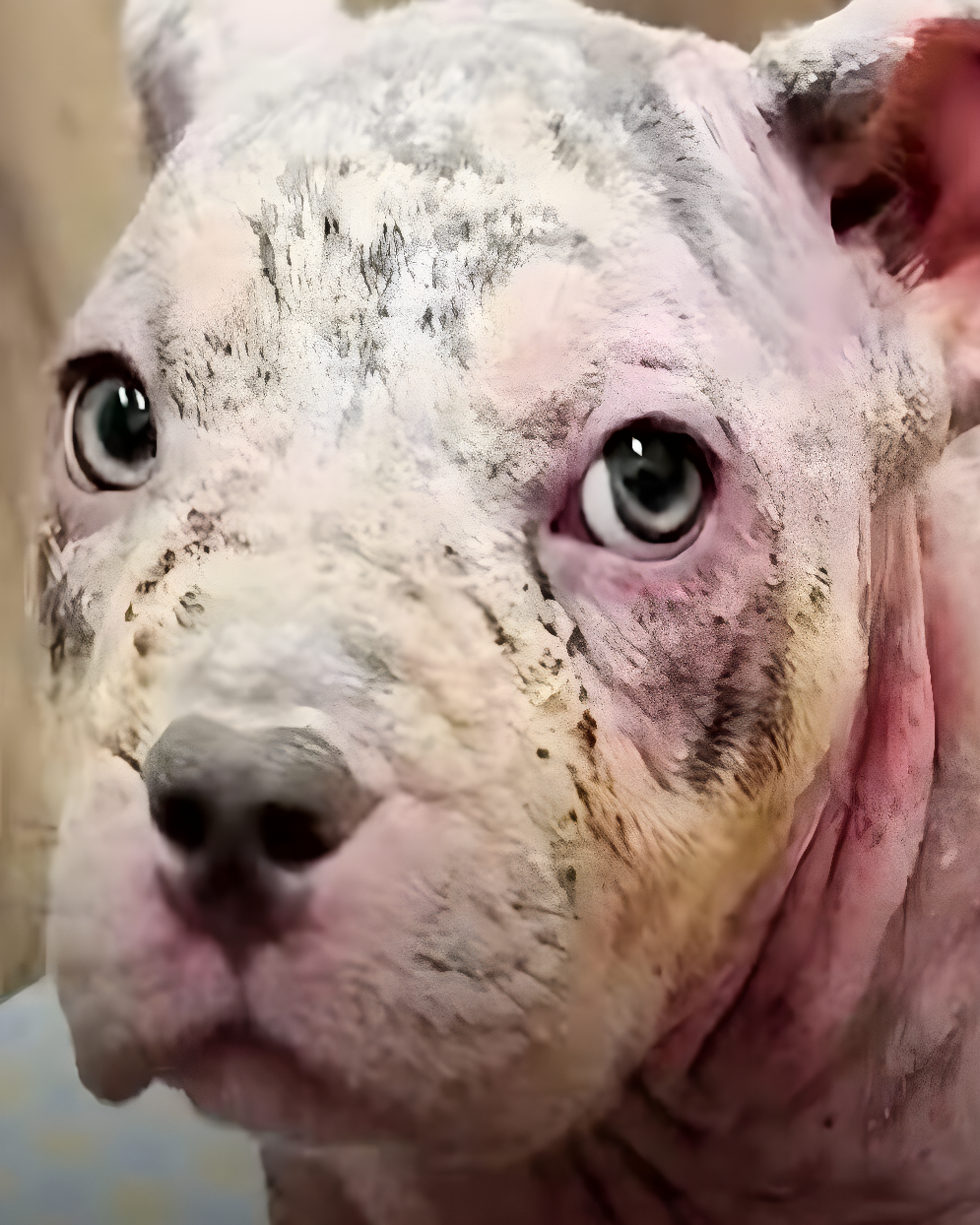 Когда Эми услышала о «щенке», который якобы нуждался в помощи, ей заранее сказали приготовиться к худшему. К моменту знакомства животное выглядело измождённым: кожа покрыта корками, шерсти почти не осталось. Встреча изменила планы — взгляд собаки оказался удивительно мягким и доверчивым.