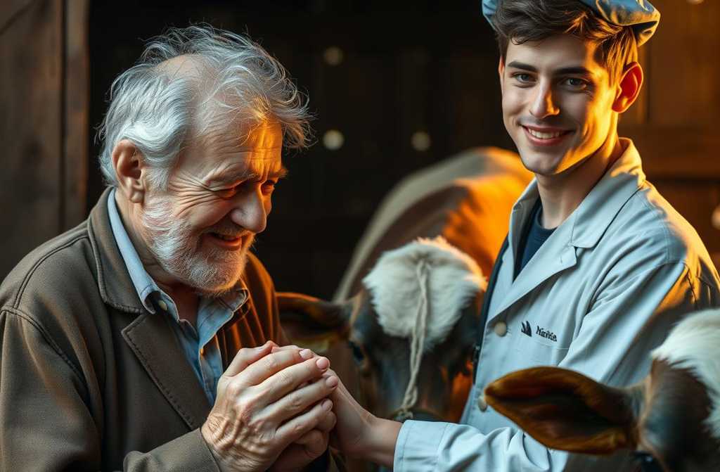 Но ирония судьбы Витька как раз выучился на ветеринара и пришёл на ферму, когда Степаныч на пенсию ушёл. Васёк украдкой наблюдал за его работой видно, что парень ничего толком не умеет. Учиться одно, а практика совсем другое.