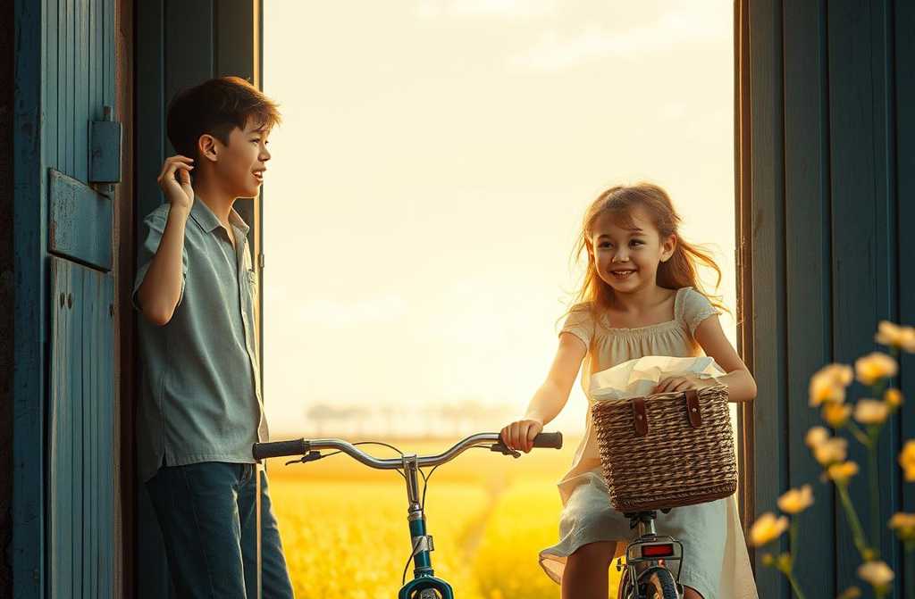 Лёшка крутит педали что есть мочи, выезжают за город, мчатся по просёлочной дороге.