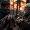 Мы едим, переглядываемся, а она шепчет ласковые, но насторожённые слова. У меня чувство, будто меня исследует её душа. Глаза встречаются, она хлопочет: то хлеб порежет, то дров в печь подкинет и приговаривает: