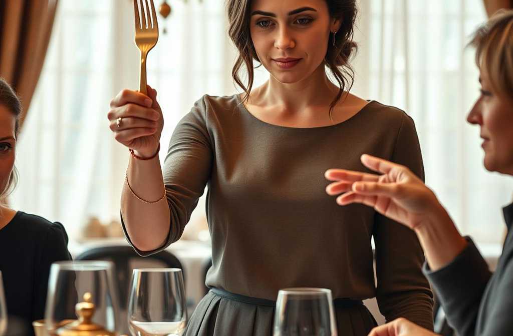 Аня замерла с вилкой в руке, превратившись в каменное изваяние стыда и неверия. Ломтик ветчины, аккуратно наколотый на зубцы, так и не долетел до хрустальной тарелки, застыв на полпути. Она, такая хрупкая, будто соткана из осенней паутинки, сидела напротив мужа и чувствовала, как на неё устремляются десятки взглядов колючих, сочувствующих, недоумевающих. Её собственное тело вдруг стало чужим, тяжёлым, а сердце подпрыгнуло к горлу, перекрыв дыхание.