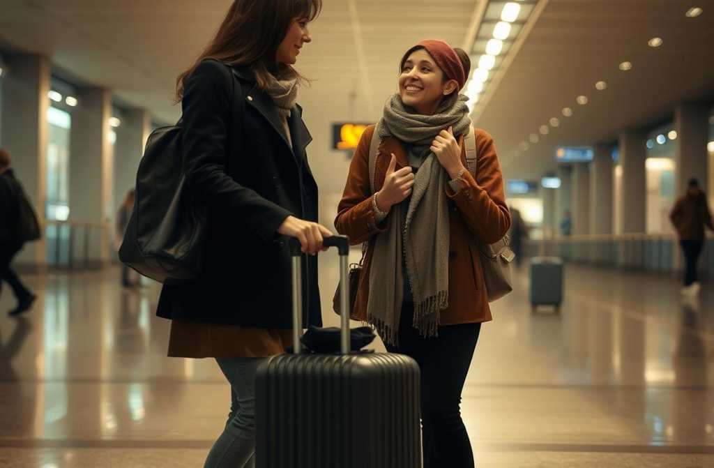 Позади неё стояла женщина лет пятидесяти с лишним. Тёмное пальто аккуратно застёгнуто на все пуговицы, шарф плотно обёрнут вокруг шеи, в руках дорожная сумка с биркой «Аэрофлота». Она старалась сохранять спокойствие, но взгляд её то скользил по табло, то задерживался на лицах вокруг.