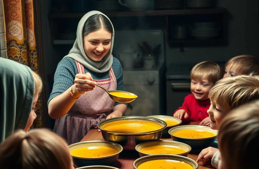 Сёстры по очереди варили один раз в день суп, долго «колдовали» над ним, мешали, добавляли чтото. Неизвестно, из чего готовили, ведь почти не осталось продуктов, но суп получался необычайно вкусным. Каждый день, в одно и то же время, дети собирались за столом. Они назвали его «разгильдяй».