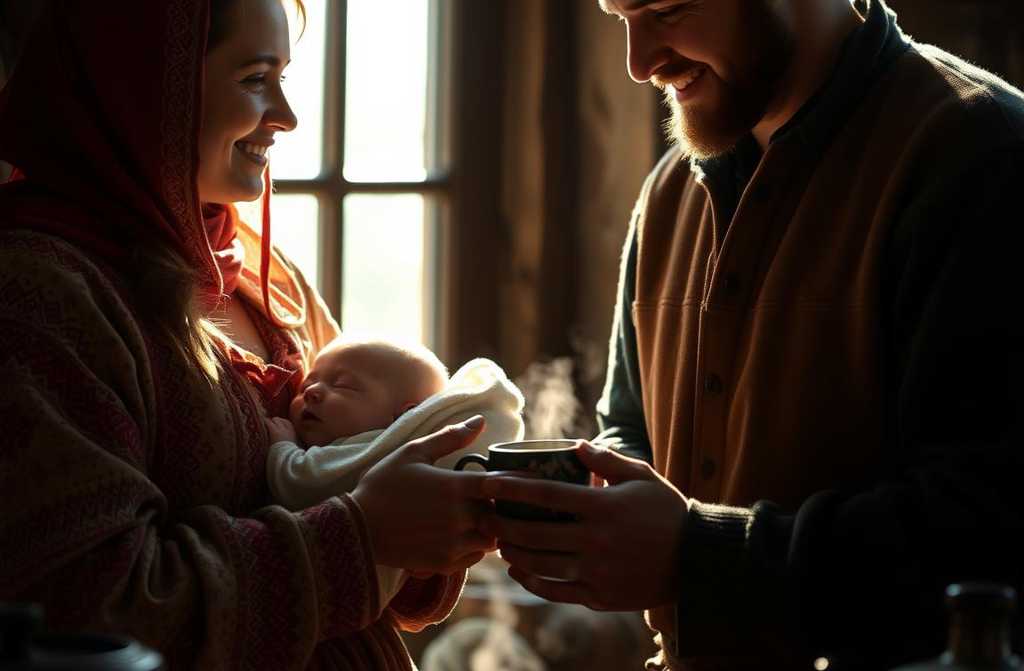 Внутри стояла коляска, горой одежды, а Николай, уставший, сидел у печи. Он поднял голову, увидел Варвару, мокрую, заплаканную, с ребёнком на руках. Он бросился к ней, положил малыша в кроватку, достал горячую воду, помог снять грязные сапоги, разогрел её руку у печки. На столе уже стояла варёная картошка, каша с молоком.
