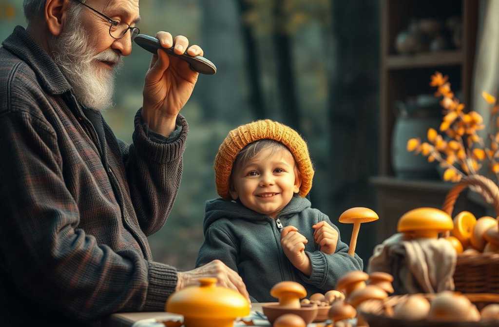 В кухне было тепло от плиты; стекло окна запотело узкими полосами, видно было лишь смутные огоньки фонаря во дворе и силуэты деревьев за изгородью. Я сел ближе к столу: бабушка ловко разделяла грибы по видам подберёзовики сюда, лисички отдельно, а дед достал складной ножик для кропотливой работы с опятами.