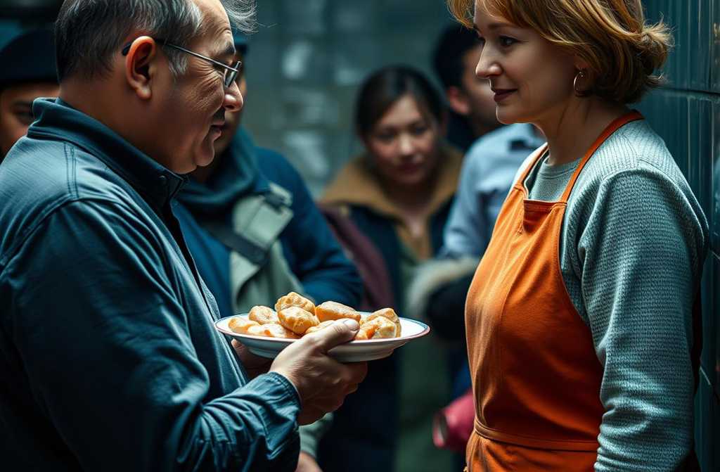 Запах варёной капусты, дешевого хлеба, усталые лица в очереди. Я раздавала гречки и гуляша, когда замерла в очереди стоял он. Пощёпанный, в слишком большом пиджаке, с оторосшими волосами, он опустил взгляд, пытаясь не встретиться глазами.