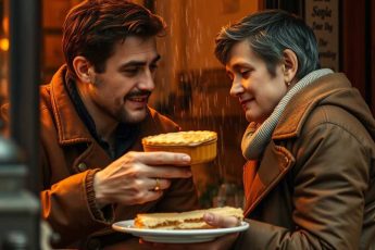 Тёмный вечер в скромном кафе на углу Тверской улицы, стены окрашены в горячий охровый цвет, а по стеклам